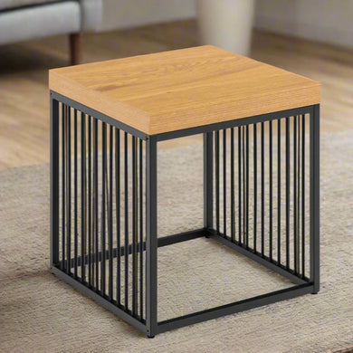 Strington Stylish Oak Melamine Side Table With Metal Bar Base 40x40cm