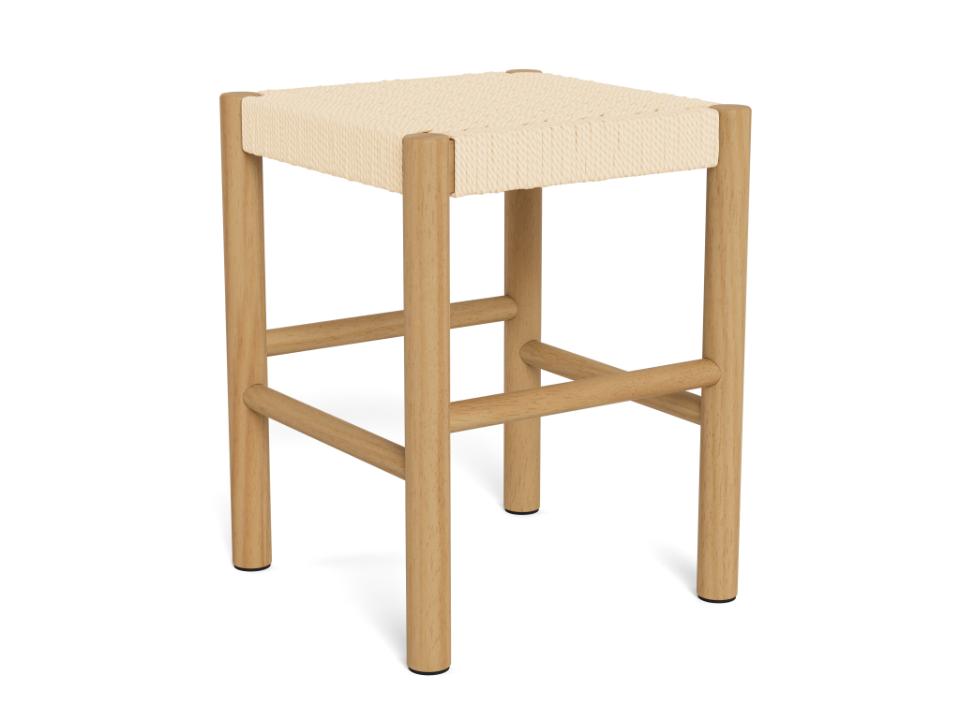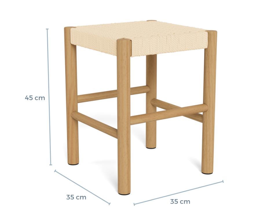 Alvin stool, beautiful off white paper plaits, base NC lacquered pine with weaved pattern, 35x35x45 cm