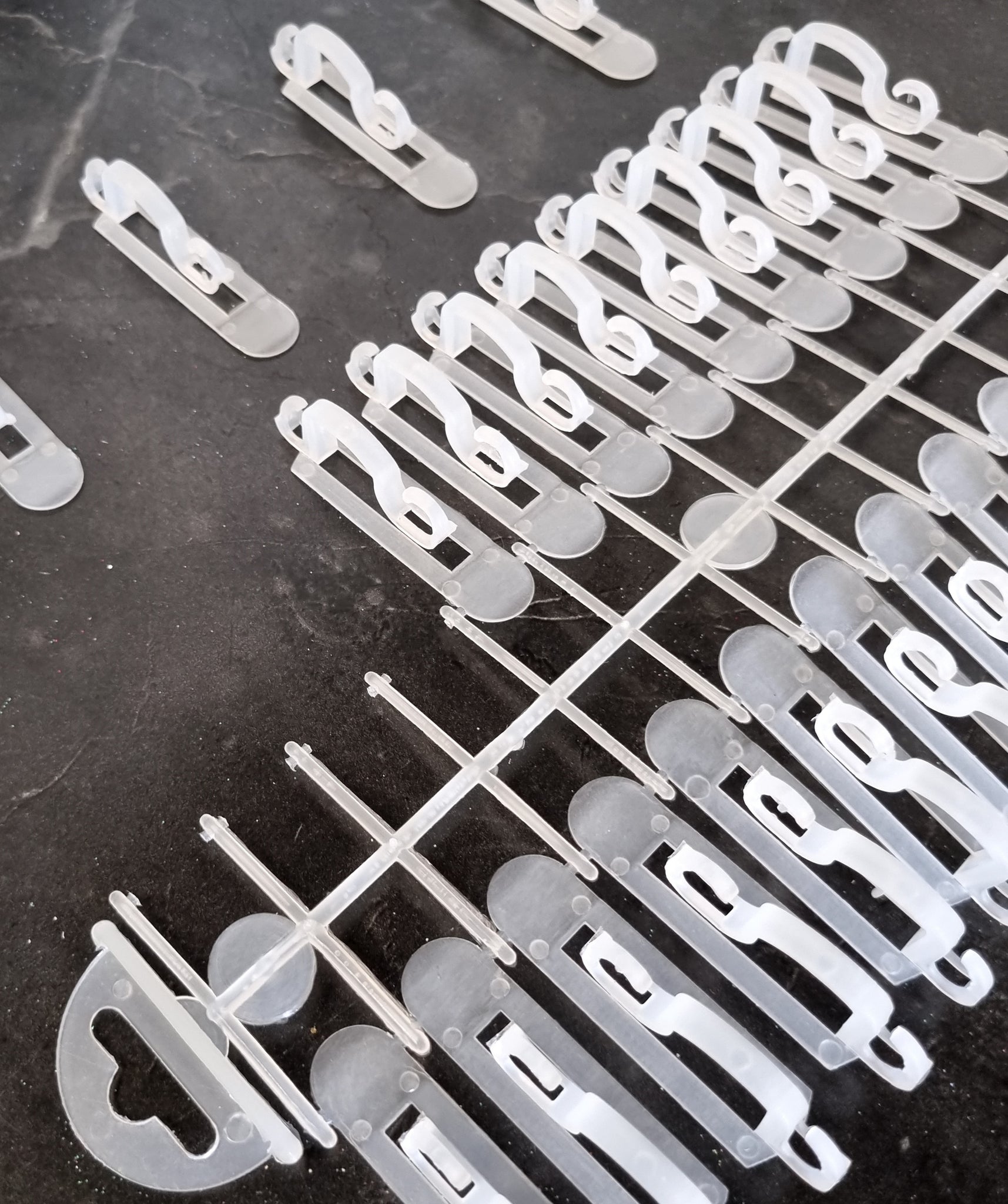 - Pack of 26 Plastic Hooks for Hanging Lights Or Wires.