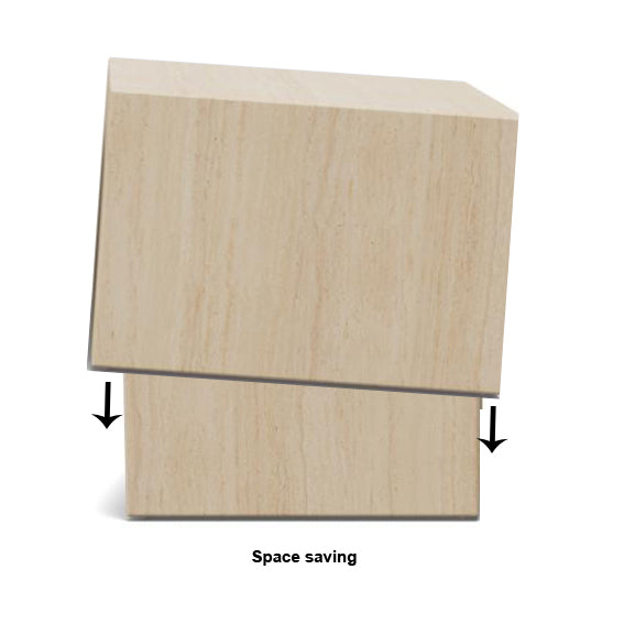 From the square form to the travertine look – this is the table to turn heads. Use the 2 pieces as a coffee table or place one or both of them in a corner with a big plant or vase to make the set stand out. Welcome this versatile table to your home.