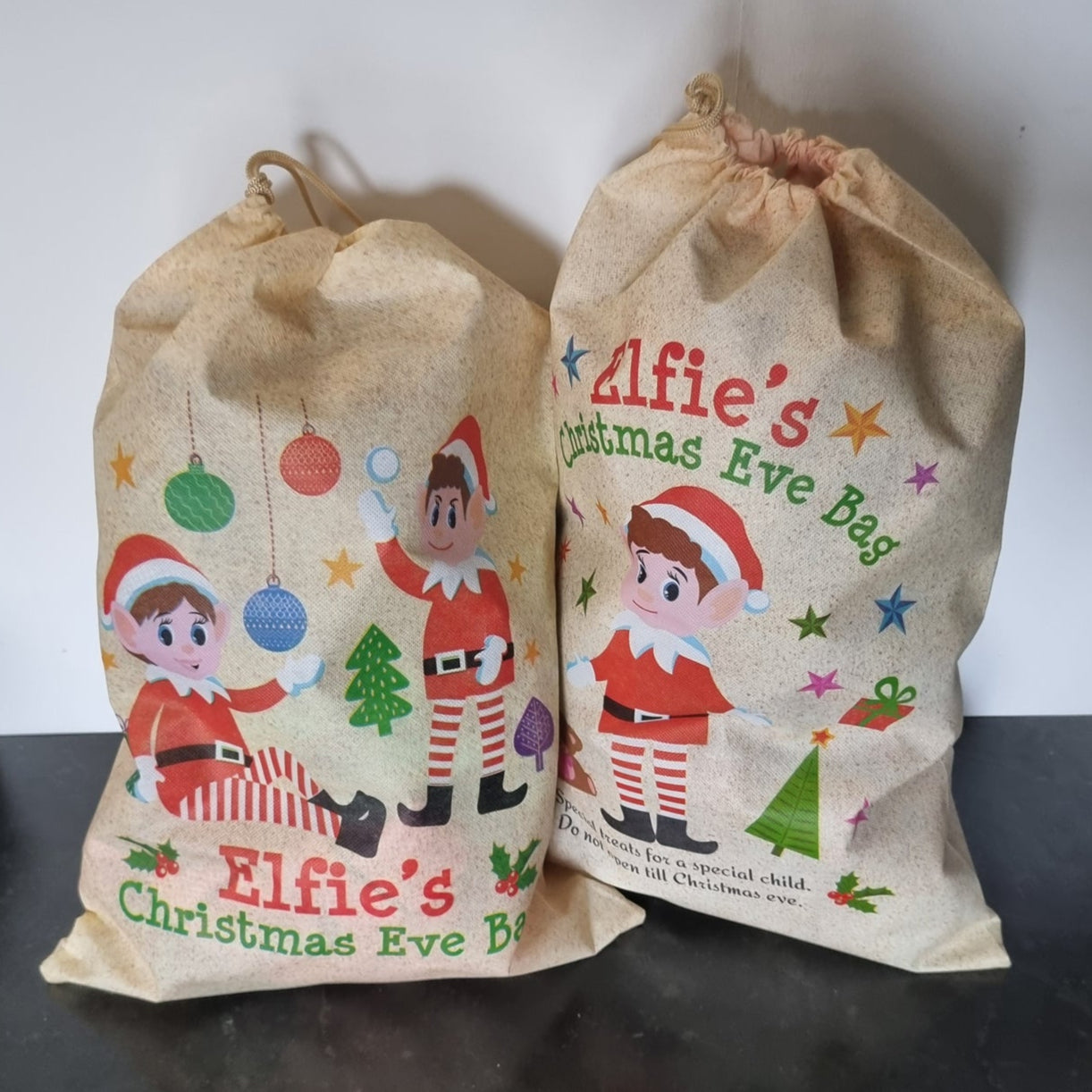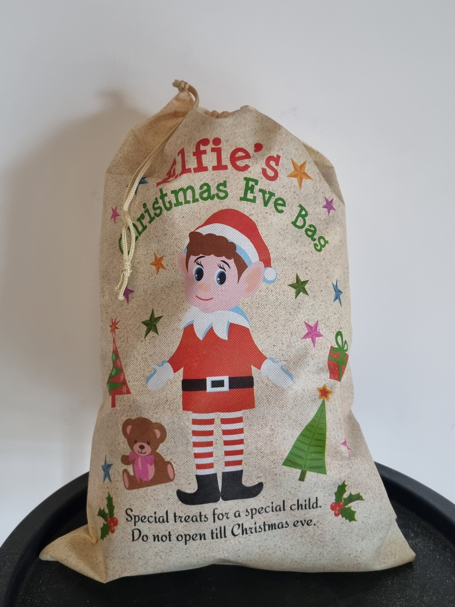 Christmas Eve is the most exciting time of the year for Children, before Christmas day morning of course. Make it even more exciting with this fantastic Elfie's Christmas Eve bag stocking. Fill it up with stocking fillers and watch the Children's faces light up as they receive their stocking.