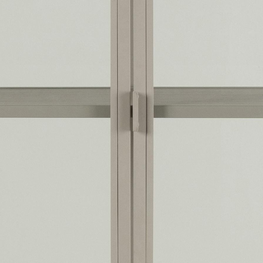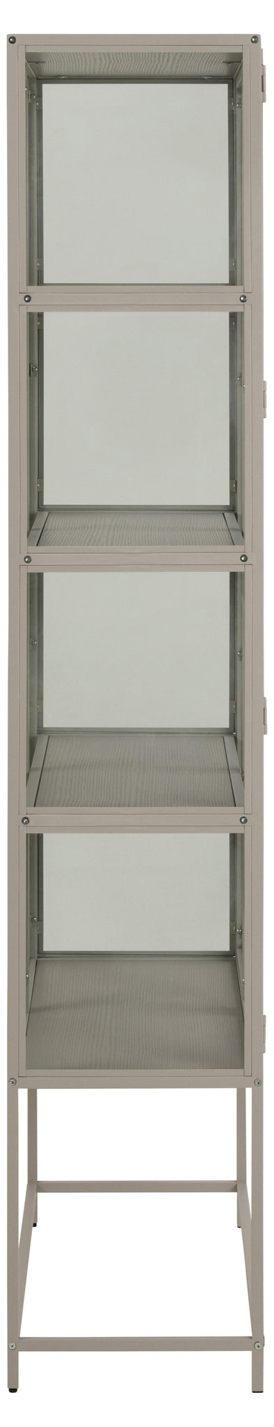 Made with a frame from grey steel and clear tempered glass, this display cabinet is visually appealing and protects your favourite objects from dust. Featuring 2 glass doors that keep the dust out and 4 grey shelves with easy care surface, it is the perfect spot to store dinnerware and decor that deserve to be showcased.
