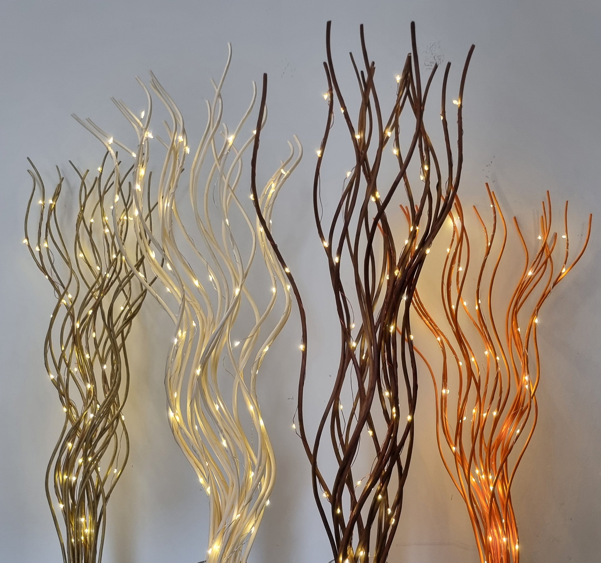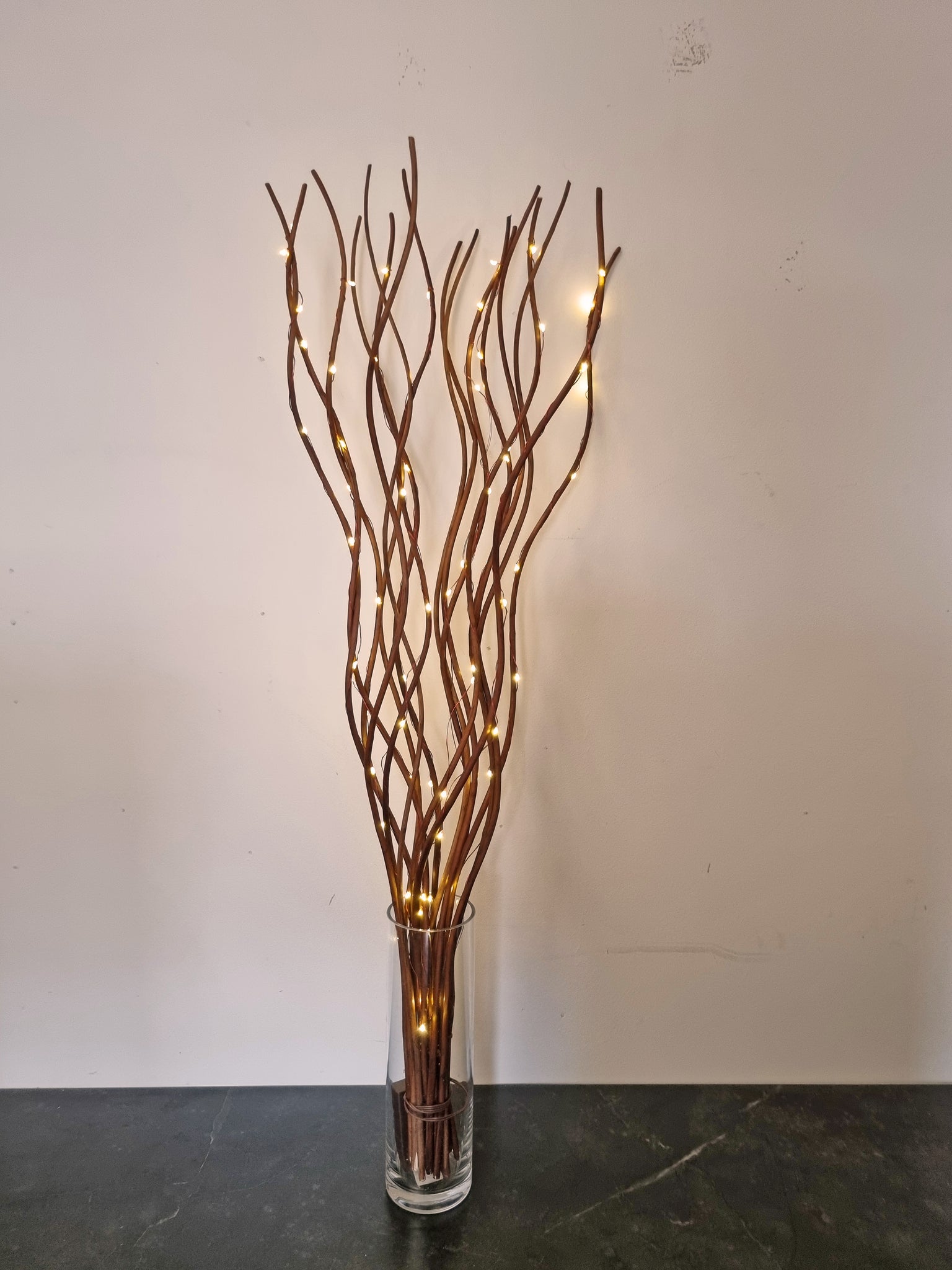 Each bundle features 20 hand-crafted spiral willow twigs with 80 warm white LED lights delicately woven through for a cozy, ambient glow. The blend of illuminated and natural twigs creates a stylish balance of light and organic charm.